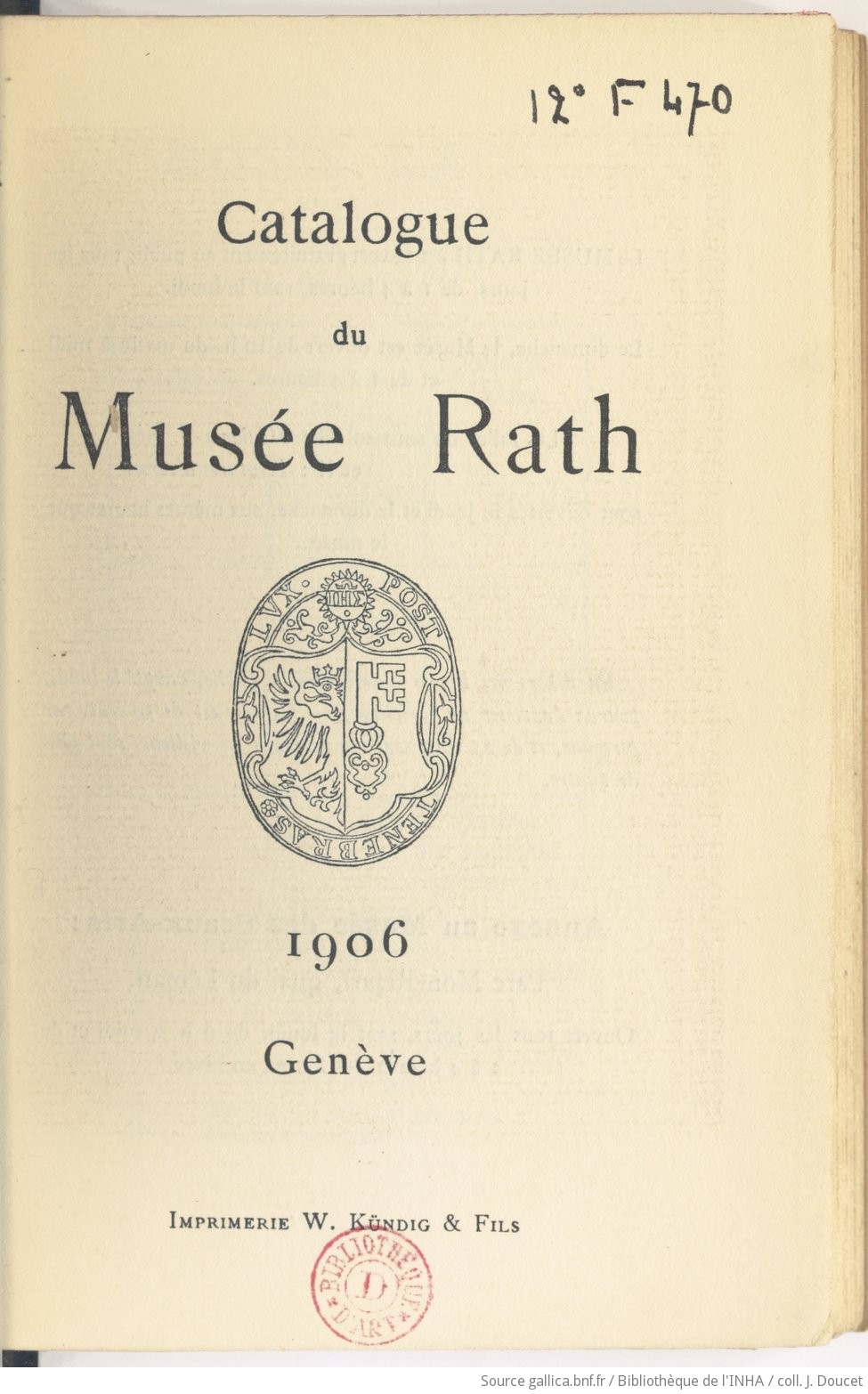Notice bibliographique Catalogue du Musée Rath BnF Catalogue général