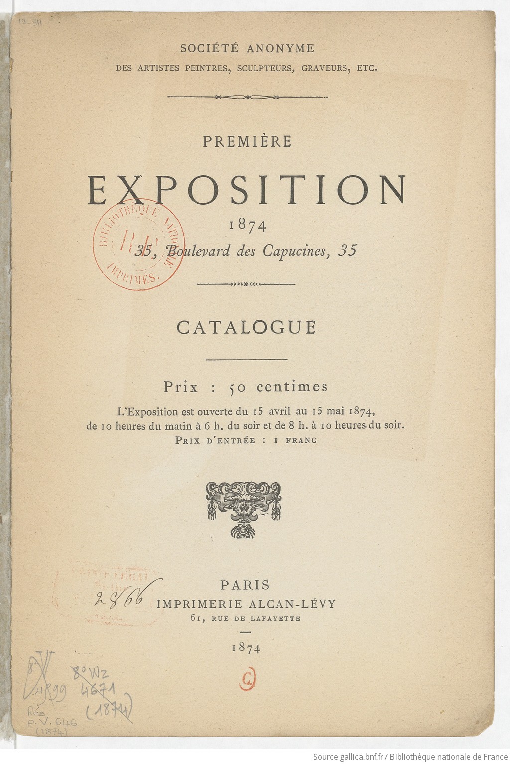 Notice bibliographique Catalogue Première exposition... / [réalisée