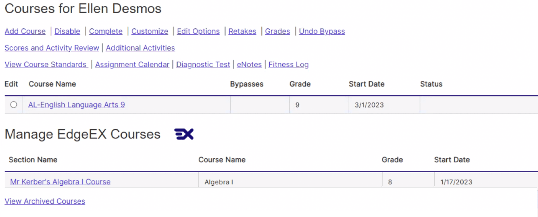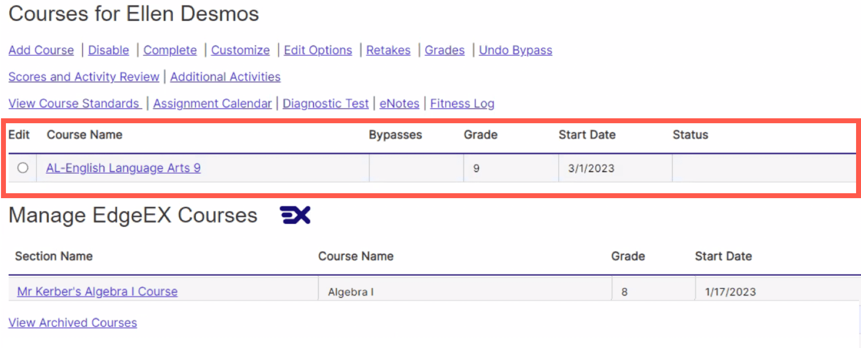 EdgeEX and heritage Edgenuity — Provisioning courses Edgenuity
