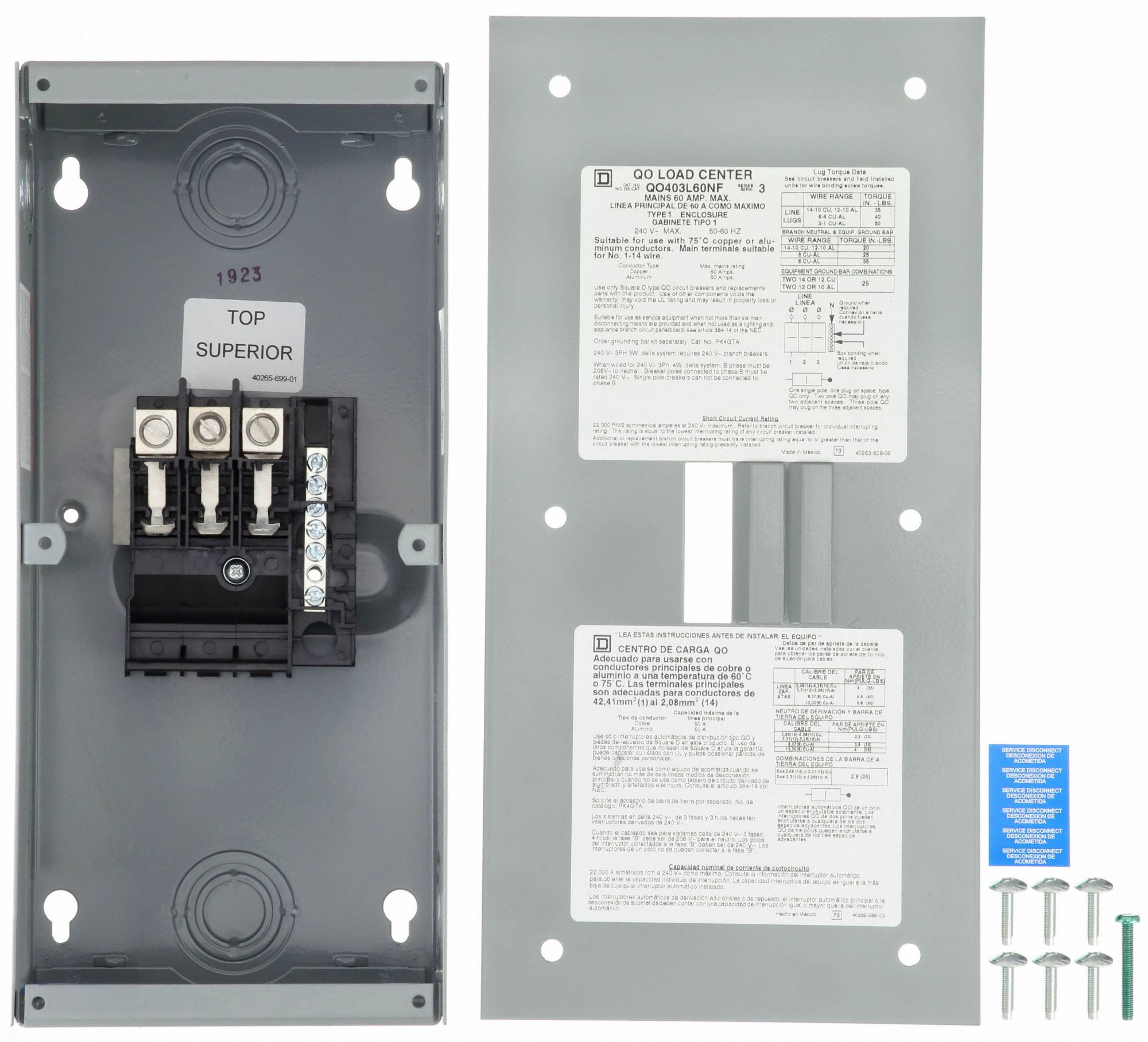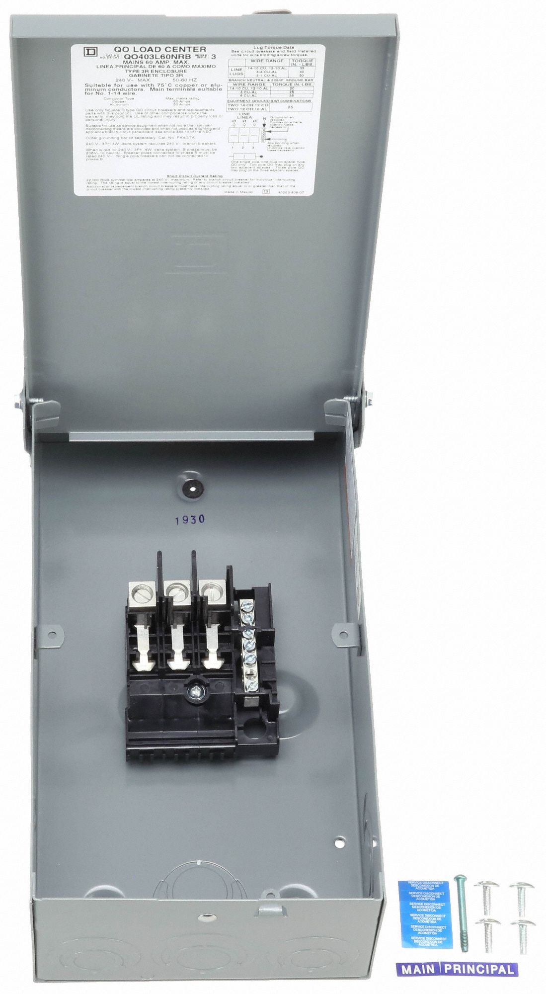 SQUARE D Load Center 60 A Amps, 208Y/120/240V AC, 3 Spaces, 65kA, 0