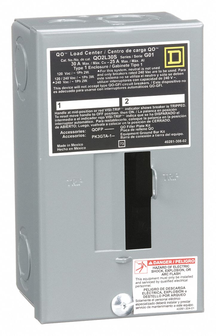 SQUARE D Load Center 30 A Amps, 120/240V AC, 2 Spaces, 10kA, 0 Max. No